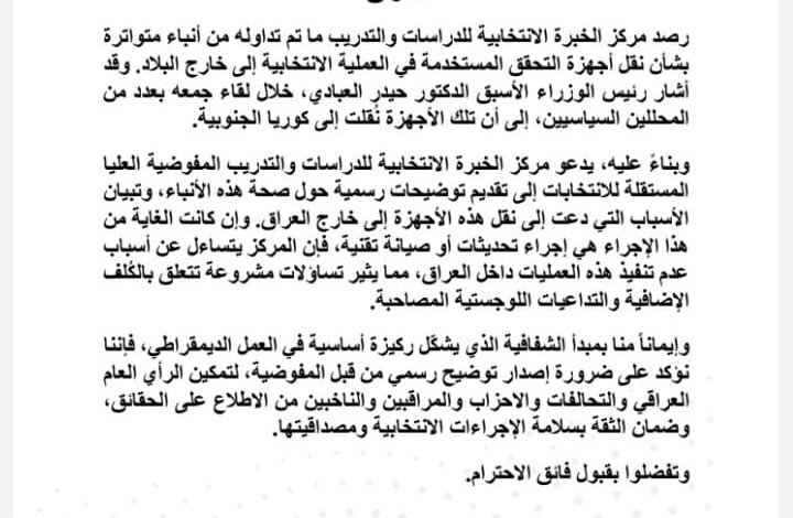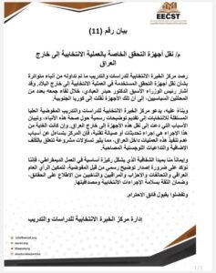 بيان بشان نقل اجهزة التحقق الخاصة بالعملية الانتخابية خارج العراق
